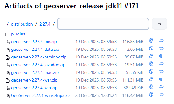 See Artifacts of geoserver-release-jdk11 #171 : /distribution/2.27.4 - Jenkins for GeoServer-2.27.4-winsetup.exe.