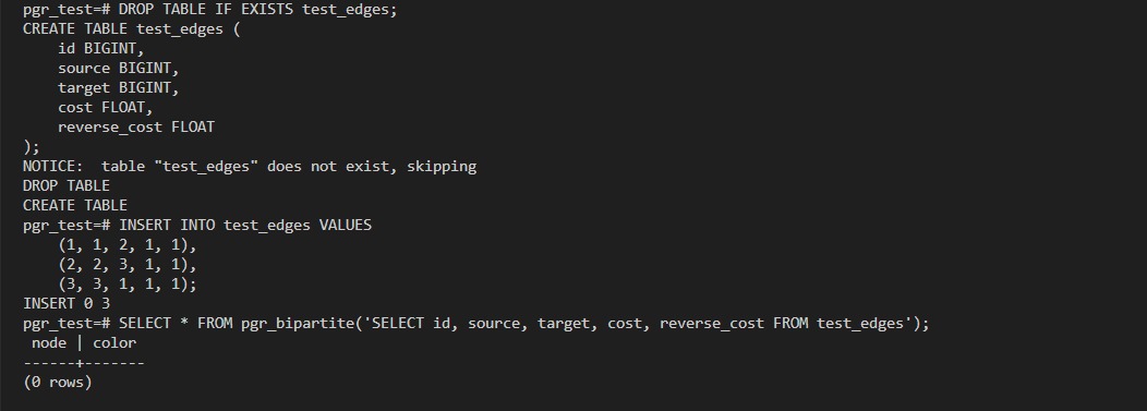 Currently, pgr_bipartite only returns an empty set when a graph is not